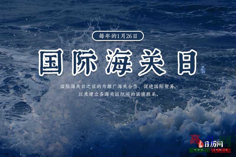 国际海关日或国际海关节,被定于每年的1月26日。国际海关日之目的为推广海关合作、促进国际贸易,以及建立各海关组织间的紧密联系。1983年,海关合作理事会成立30周年之际,海关合作理事会决定设立每年的1月26日国际